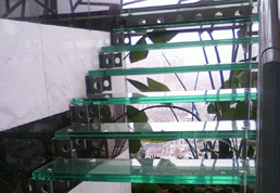 Laminated glass is a type of safety glass that holds together when shattered. In the event of breaking, it is held in place by an interlayer, typically of polyvinyl butyral (PVB), between its two or more layers of glass. The interlayer keeps the layers of glass bonded even when broken, and its high strength prevents the glass from breaking up into large sharp pieces. This produces a characteristic "spider web" cracking pattern when the impact is not enough to completely pierce the glass.
